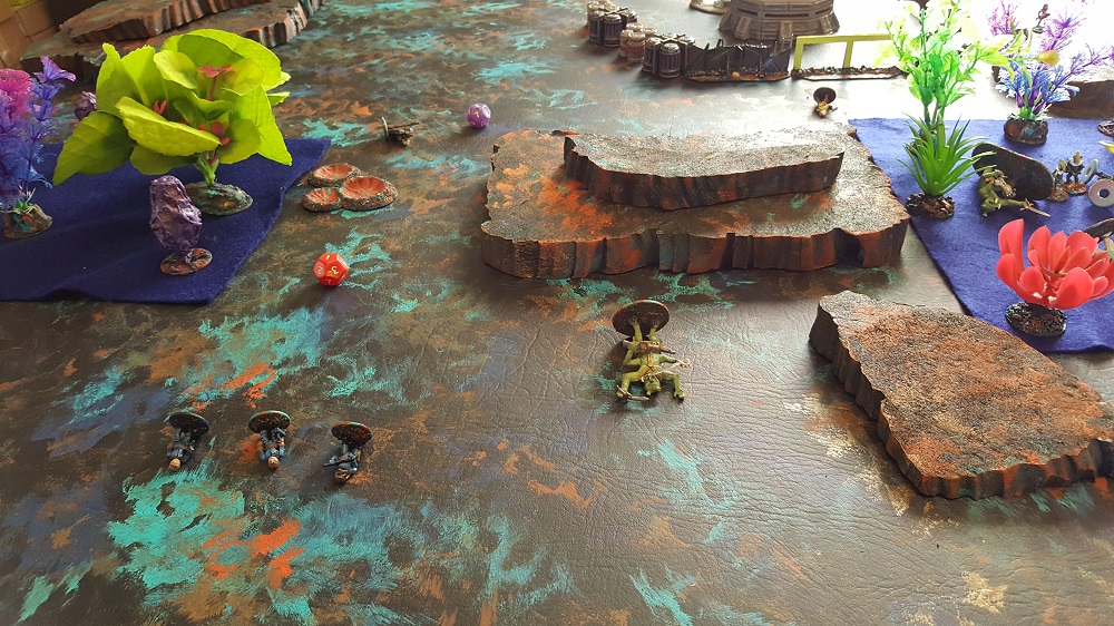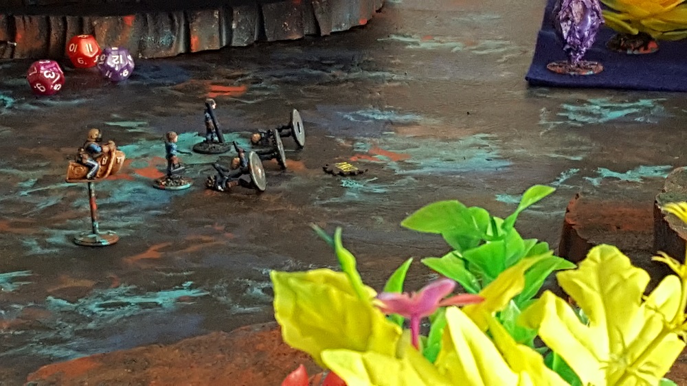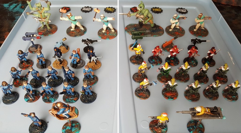 Of the 20 figures per side that started the the game, the Legionnaires ended it with six remaining and the Death Raiders with nine. The survivors all received eliteness rating improvement from Green to Regular while the dead are replaced with new fresh Green troops. So although the Legionnaires won this battle, they will be a little bit handicap for the next one. It will be interesting to see how this affects the players choices going forward: Will they protect their improved troops so they can improve even more by continuing to survive the next battle? Will they give up on winning a game sooner in order to preserve their numbers? This should be an interesting driver for a wide array of subplots to give scenarios more variation.