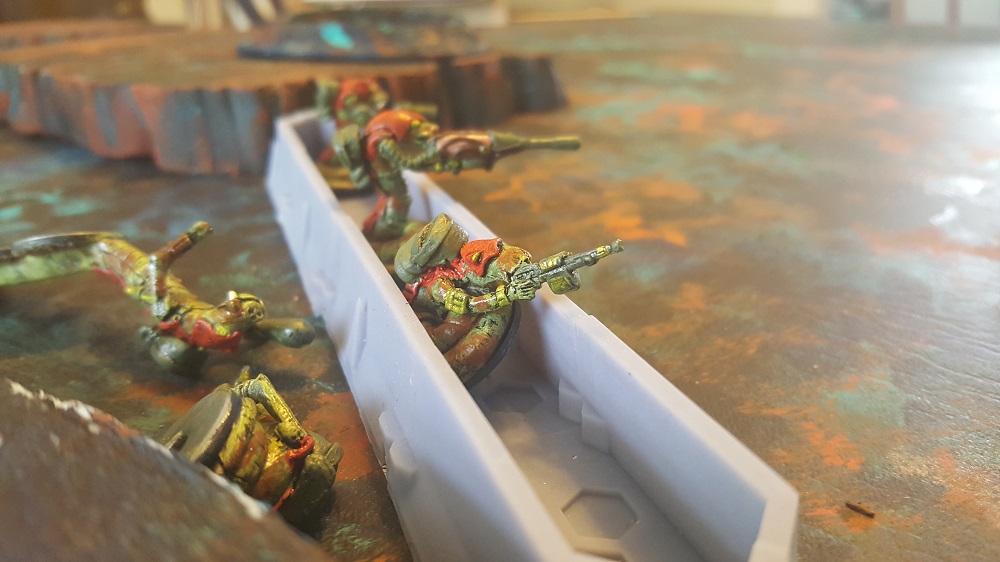This Scenario 2 (Attack on Outpost 983) playtest AAR is long overdue. My attention got diverted for a couple weeks to the project of adding some additional WWII items to the business. Now that it is safely into other people’s hands, I can get back to this project. In short, the rules set Fictioneers: Legacy is coming along nicely. We still need some background info written and the text cleaned up a bit but the core rules are ready to be released for beta testing. If you are interested in getting a copy of the rules and providing feedback to us about them, please let us know via the contact form here. Two of the five planned initial scenarios have been playtested and just need typed up. The other three are just basic ideas and still need to be developed. Getting the core rules and first 2 scenarios ready to coincide with the launch of Fictioneer minis has been our goal for quite some time, and it looks like we are still on track. The molds are getting closer to being complete but are still likely months away.