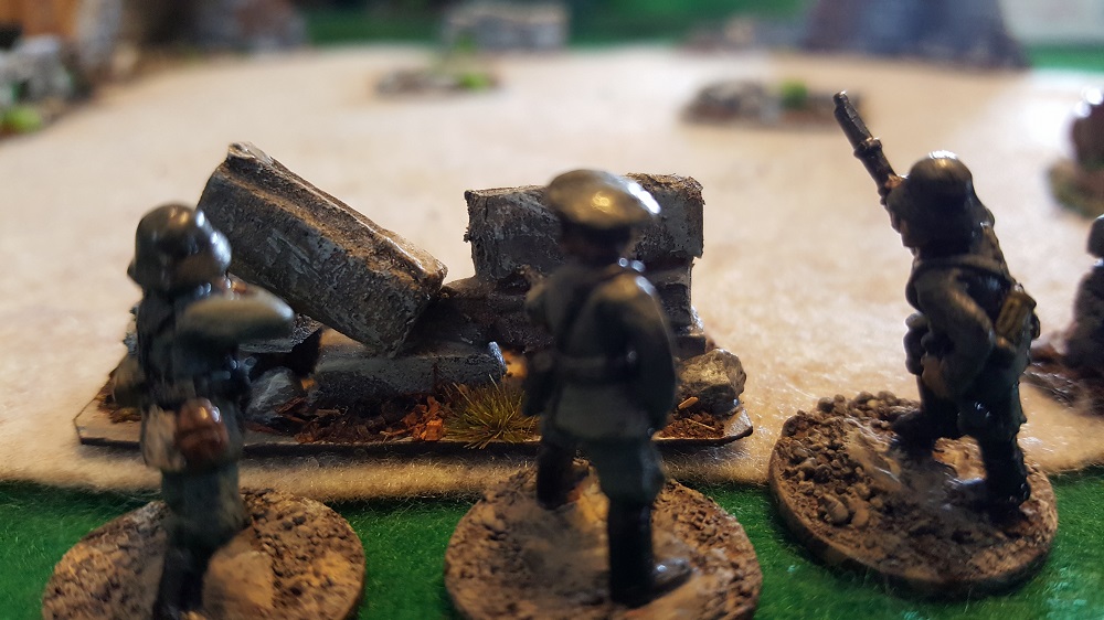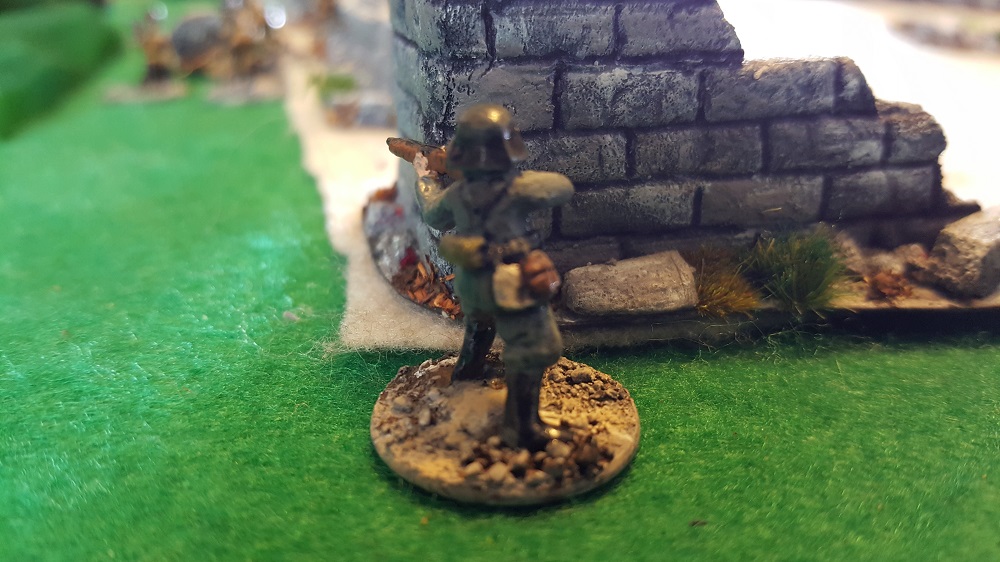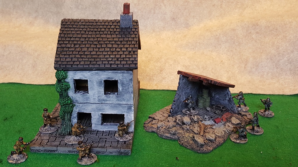 These are written for 1/72 scale figures and models, though players can easily convert distances to use their preferred scale. This is also a 1:1 scale game where each figure represents one person or item. It is also a super “up-close and personal” game where the ground scale is equal to the figure/model scale. That is fairly unusual in tabletop gaming since everything is mostly at close range. We purposely chose this because it is easier for new players to understand and it adds a gritty realism to the game that many others are lacking. You are really living on the edge when most of the game in spent within grenade throwing range of your enemy. This system does allow for (or even rely on) small action event driven scenarios rather than large pitch battles. This is not the rules set to use to reenact all the beach landings on D-Day. It is the one if you want the tense encounter between a few squads during recon patrols, night raids, a group ordered to take out an enemy bunker, or even want some Hollywood antics like in the movie Kelly’s Heroes.