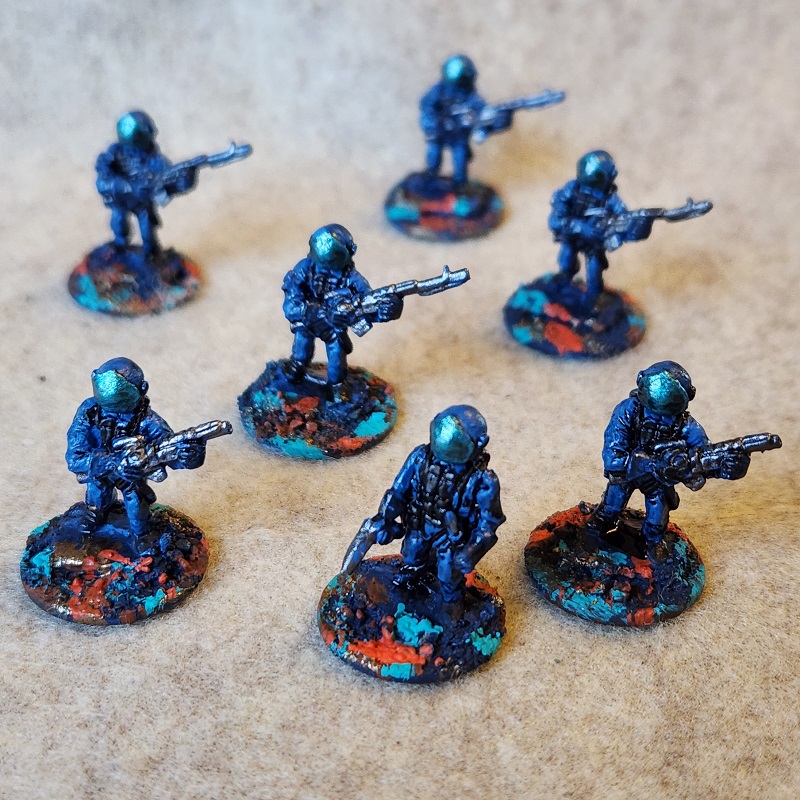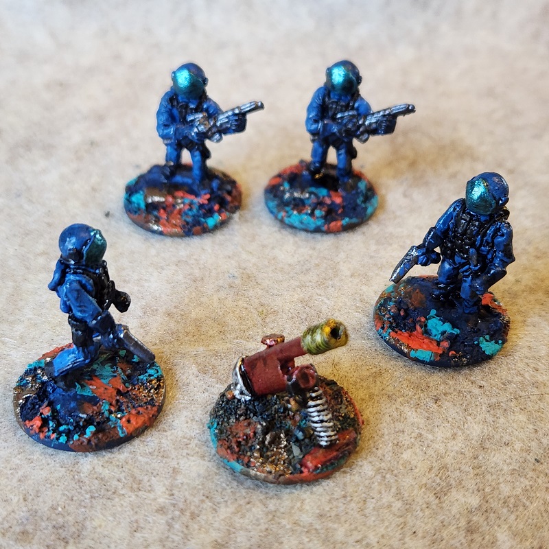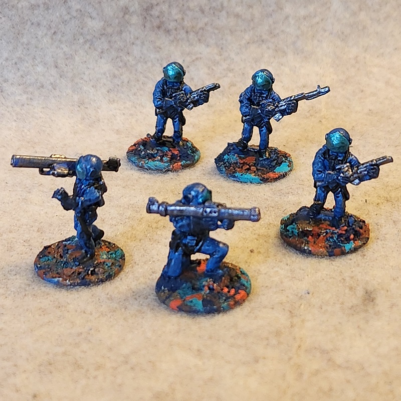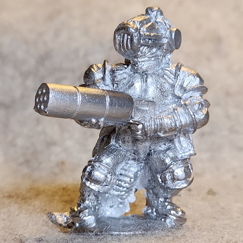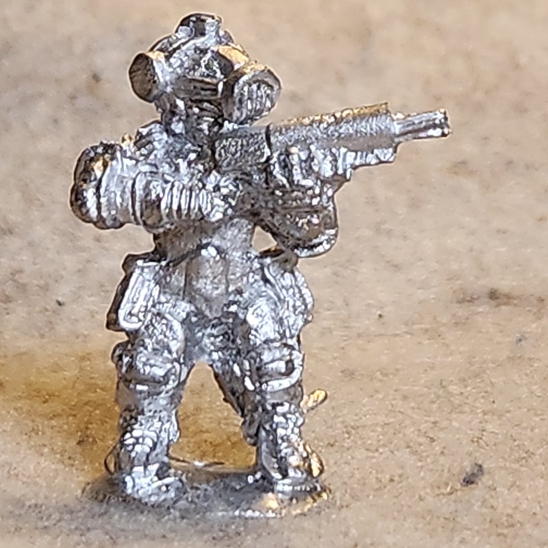 Regarding the Space Marines figures, the Mercantile League are now in production (photos below) which leaves just the Ranan Horde to be re-released. New photos for the GPR and Azzies and some others have been uploaded. The shop page for the SM is looking pretty good now (here). Work on the two factions that Stan did not complete back in the 70s is well underway. The initial Bug prototypes are done and they will be molded soon. The Mertuns are planned out and a few initial pieces are done. Their walkers are going to be a bit of a project. The goal is to have all the pieces for them ready to put into a mold along with the Ranan in a few months.