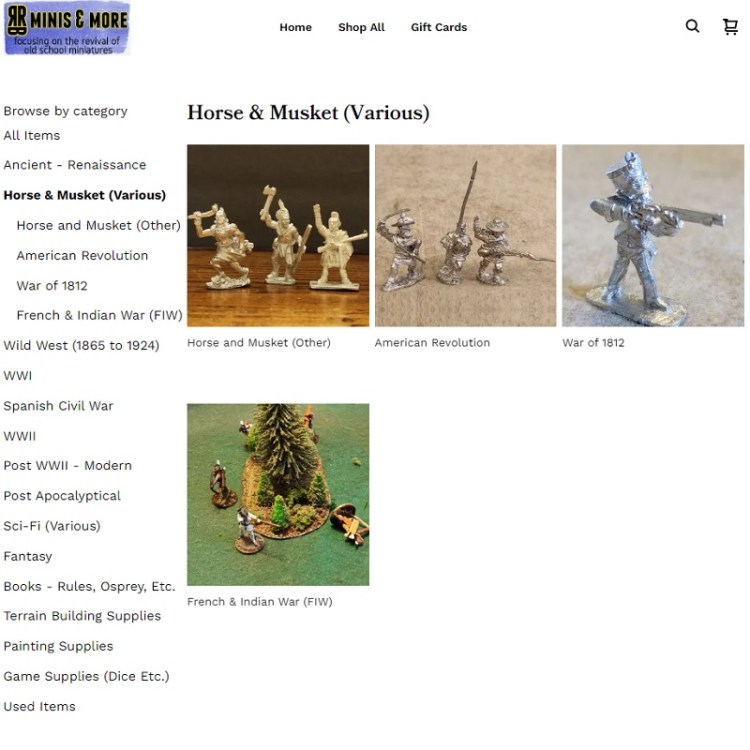 We’ve made a small organizational change to the shop directory in order to prepare for some new incoming items. It became apparent quickly that the Horse & Musket category was going to be overwhelmed with everything we have to stuff into it. What we did was make sub-cats under it for the French and Indian War (FIW), War of 1812, American War of Independence (AWI), and ‘Other’. In the coming weeks, those will continue to have new items added. Currently, only FIW is well populated.