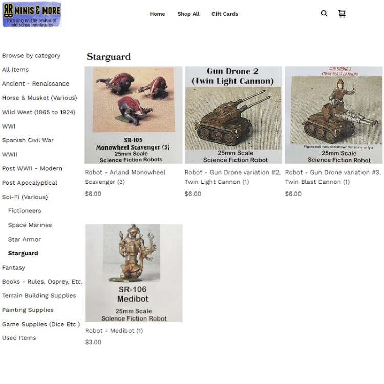 Next, we added the Ameron packs to the Starguard category as well as some additional robots/drones. Oh, and speaking of Starguard, the Tauran Warriors are back in stock. These have been very rare for many years and a lot of folks are glad to see them back in production… grab them while you can.