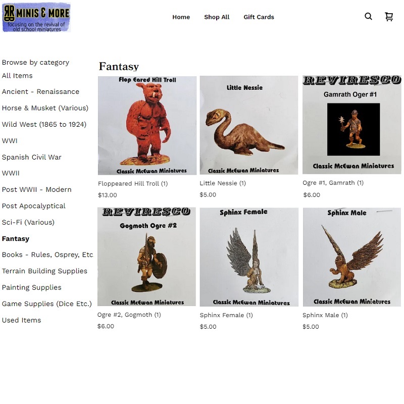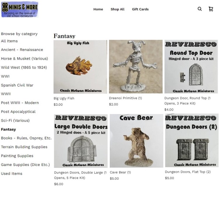 Lastly, we added some more variety to the Fantasy category listing: Flop Eared Hill Troll, Little Nessie, a couple Ogres, female/male sphinxes (that doesn’t even sound right), a big ugly fish, a primitive Dreenoi (this should have been listed in the Starguard paragraph but they are great as any bug like fantasy critter so I’m leaving it here), some really cool dungeon doors (some of which open/close), and my favorite bear mini (the Cave Bear). You’ll notice I also included the Cave Bear in the listings for FIW, AWI, and 1812. So much of that fighting takes place in the wilds, I thought it would make a great random encounter. Now I just need to come up with some stats for it in Song of Drums and Tomahawks game terms.