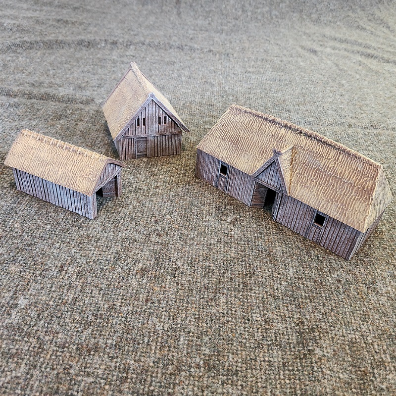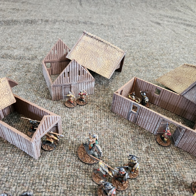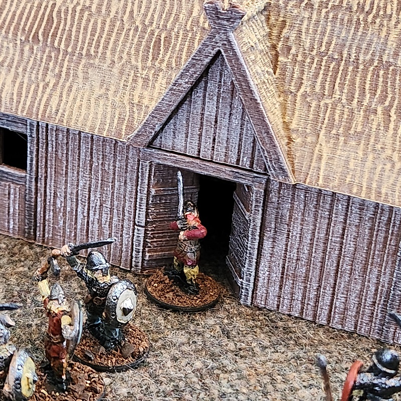 Last Dec. at Shore Wars in Mentor OH, I had the opportunity to meet some really great new people and catch up with some friends as well. One of the new people was Ron from Diabolical Terrain. He was there selling some really great looking 3D printed buildings at a reasonable price. Shortly after the event, I ordered a couple Viking/Dane buildings from him in 20mm to go with our Warlord minis. When they arrived, I was even more impressed with how good they looked. I knew that they would work great as convention table display items to help show off the minis. I also knew that I’d want to use them in any convention games we run. And I knew that inevitably, all that would lead to people (and you know who you are) wanting to buy them.
