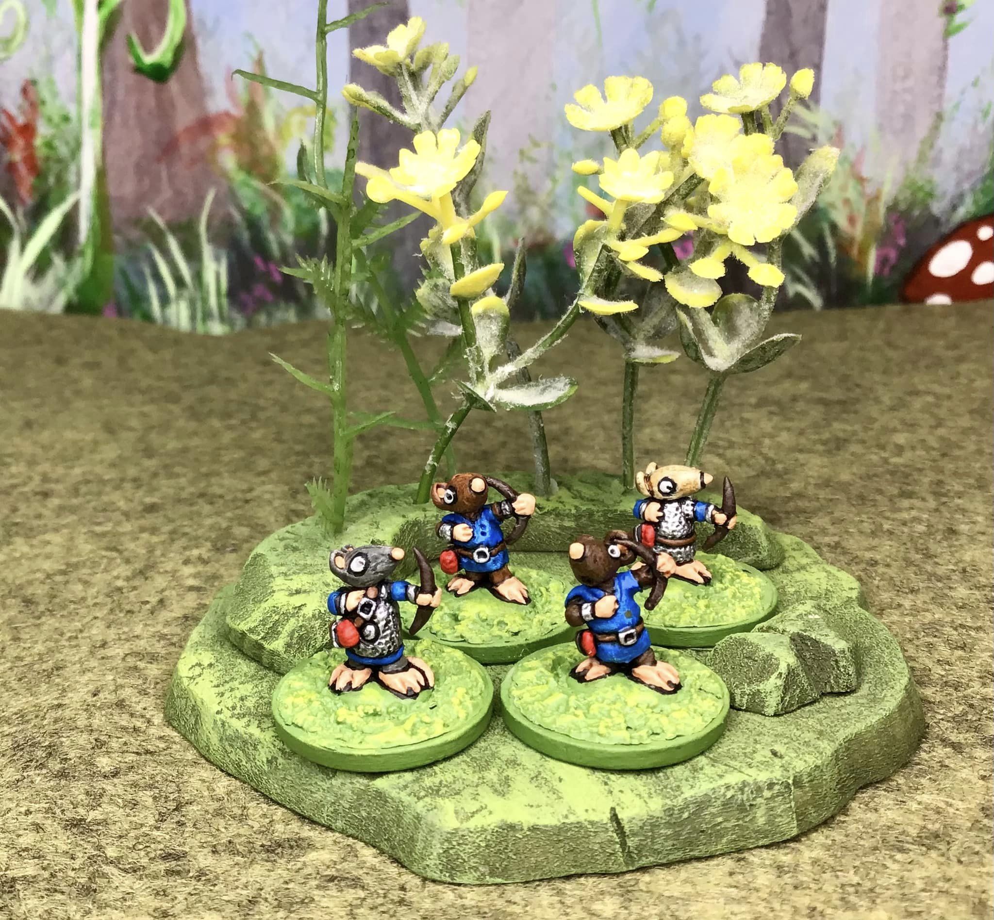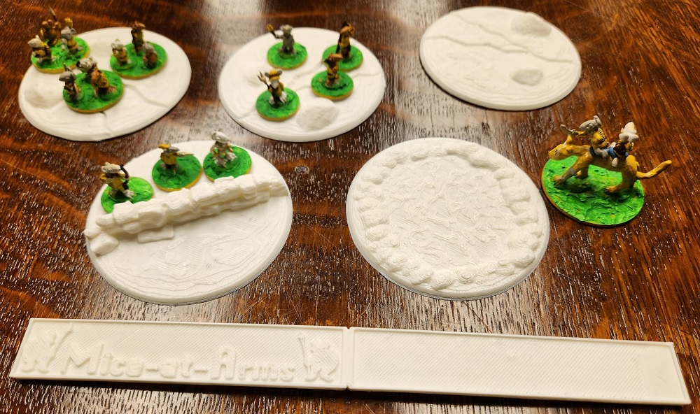 Most of you have likely heard about the great game Mice-at-Arms (MaA) by David Bezio by now. If not, you really should check out our fb group and our webpage for early alerts of these sorts of things. Note: All photos of nicely painted minis and terrain shown here are provided by David, and all partially painted minis and unpainted 3d prints are by me (which surprises no one that knows me).