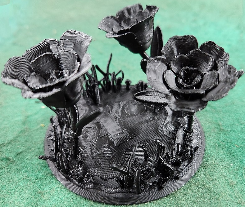 So hills, rivers, lakes, rough going, and walls even, all translate pretty well but what about woods. In scale, which is around 1:10, trees would be too large to fit a woods in the game table space. But no worries, there is now another woods-like area that our mice heroes can take cover in: the Tall Patch. The tall patch is an area of flowers, weeds, and/or briar patch. Most gamers don’t have this sort of terrain piece in their pile, and it is unlikely to be found for sale in a shop, so it is a good reason to get creative and have some fun. Below are the images from the rulebook, from David’s crafting, and my 3d printed model for inspiration.