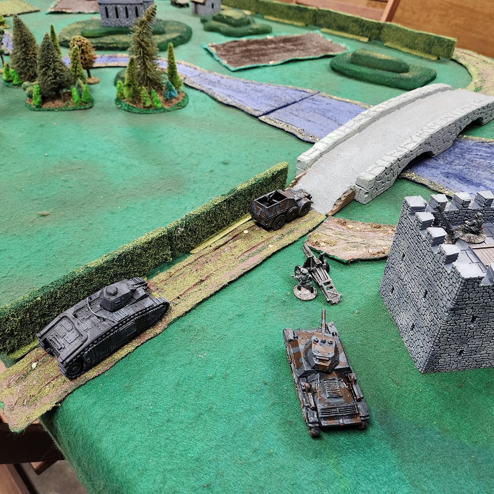 Next, we have been focusing a lot of time and attention to Bullets and Mortars. It is the skirmish game that we will be running at Origins this year. Everything with that is coming along nicely. I did do a touch up of all my hills so they match my ground cover color scheme better. Can’t have a shabby table at a big show like this one. I still need to paint up some more troops/vehicles. I signed up for 6 player max games and don’t yet have 6 full forces. I’d better get busy on that. I’m leaning toward doing an Italians vs. Russians on the Eastern Front during World War II scenario. It’s a bit out of the ordinary, I have the most already painted for them, and I have a good mix of vehicles, cavalry, and infantry… and they would be the easiest forces for me to balance the sides. I don’t want one side feeling like they couldn’t win because the other side had superior gear. There will be more on this as things continue to progress.