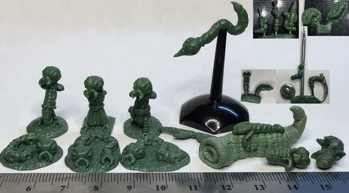 Below are some of the initial Grubvurm figures and greens sculpted by David Bezio to give you an idea of what is coming. More details are in the SA Supplement.