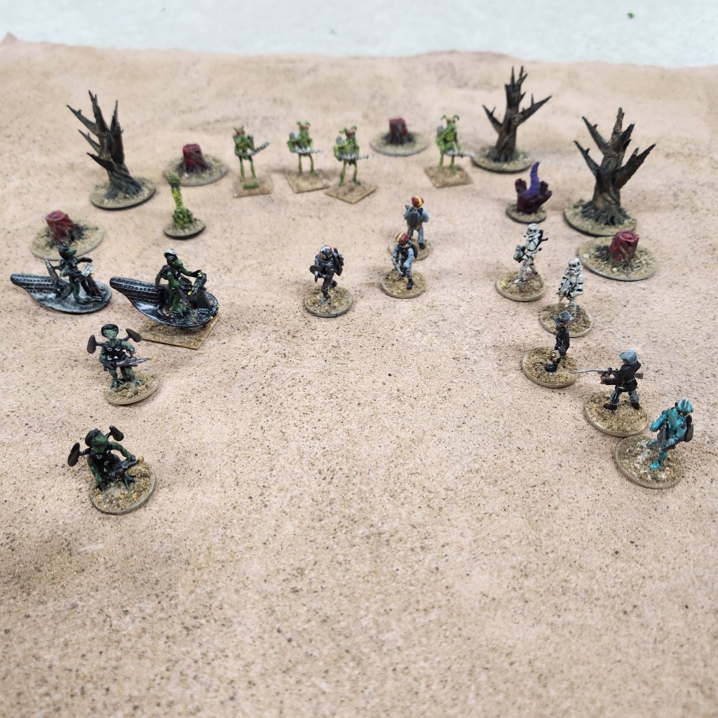 The very short answer the in way of a review is that it is a very fun and fast game which requires very few models and little terrain. It uses a small 2’x2′ (or larger) play area. This all makes for a very low barrier to entry, and makes for a great game to show beginners about tabletop gaming.