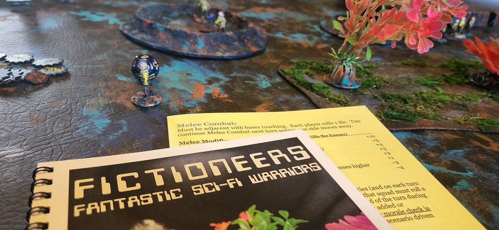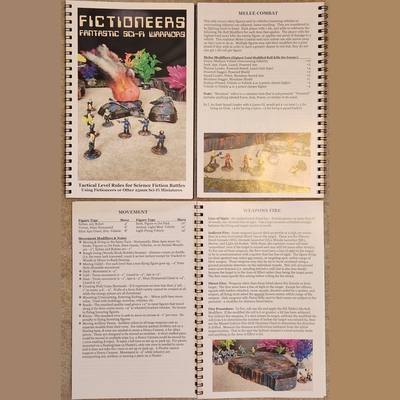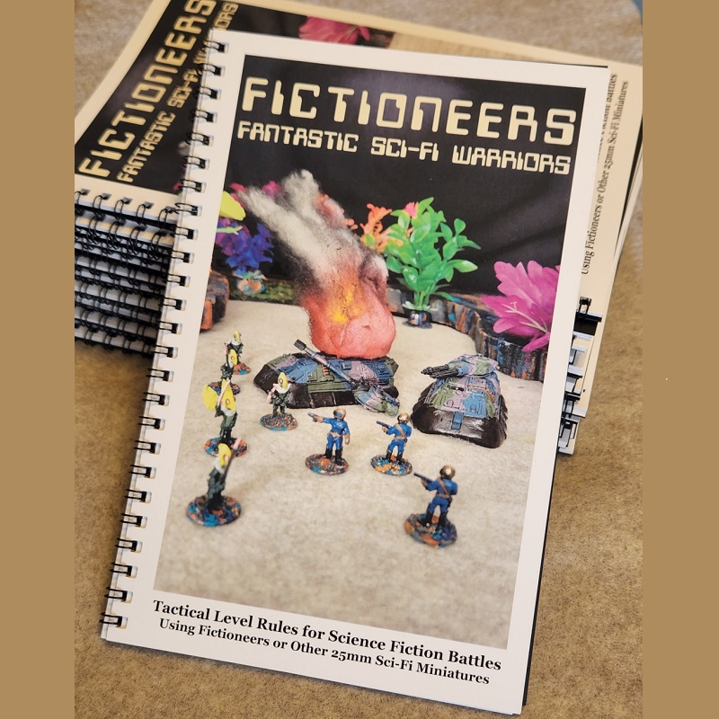One thing that has always bothered me is that there was no ruleset specifically written for the Fictioneers miniatures. Sure, they can be added into any mini agonistic rules system or any that allow for proxy models to be used, but questions were left unanswered: Who are the Xybans? Where did the Eeeks come from? What is the planet Sita like? Well, we rectified all that with a new ruleset just for them (Fictioneers: Legacy) written in 2021. Playtesting and revisions took us well into 2022 but it is now available as a free PDF (links below) and print versions on the webstore… the 2nd printing here, and a few remaining copies of the 1st printing collectors edition here. A 3rd printing will be done in 2025.