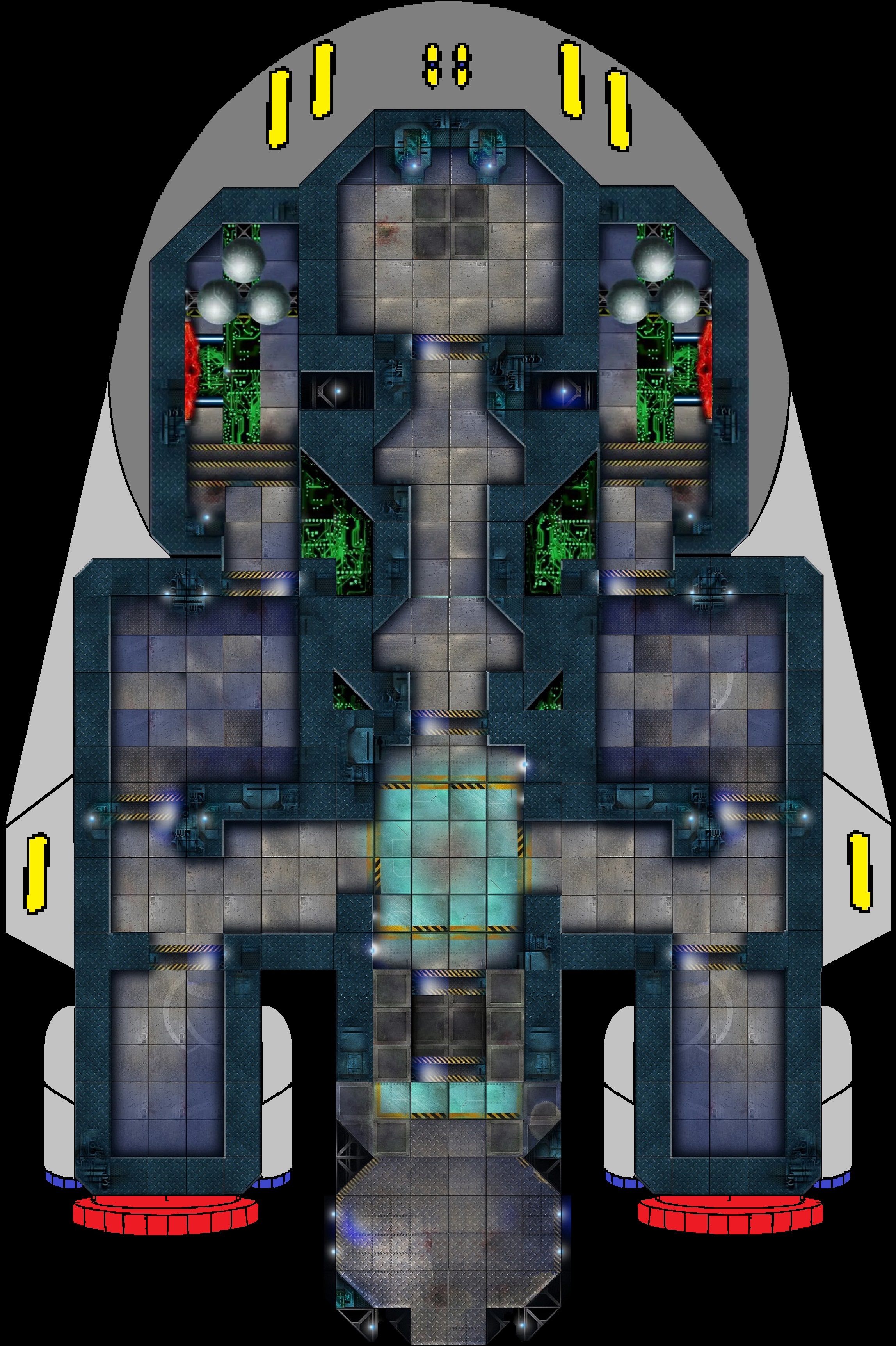 Scenario 11: A huge thank you to Loresmyth for allowing us to use their map tile set to build the ship floor plan and offer it to you for your personal use. We have it in three ways. 1. Full for those that want to have it printed as one sheet as a 30″x48″ poster. 2. Printed out for you on a sturdy 30″x48″ vinyl mat. 3. Divided for those wanting to print it on standard U.S. 8.5×11 in. sheets of paper. If you need something else, let us know. If using the sheets of printer paper method, the sheets can be trimmed and taped together to make a full-size game map ready for miniatures. Or a better method is to pick up 11 12×12 in. vinyl self-adhesive floor tiles. Stick a sheet to each one and then trim with a good metal straight edge. These tiles have enough weight to say in place during gaming and will last a long time for repeated use. A smaller version of the ship (to aid in tile arrangement), an image of a printed sheet with minis on it as an example, and the specific tile set used to make this floor plan map (called Nebulus Outpost) are all shown below. The tile set is available as a download at Drive Thru RPG. While you are there, use their search function (simply type in Loresmyth) to find their many other great other sets. I have most of them and love them all. Also, check out all Loresmyth’s amazing physical game products on their site here. Not a paid endorsement. I purchased all the items myself. As always, I simply recommend items that I have personally used and believe are good products and values.