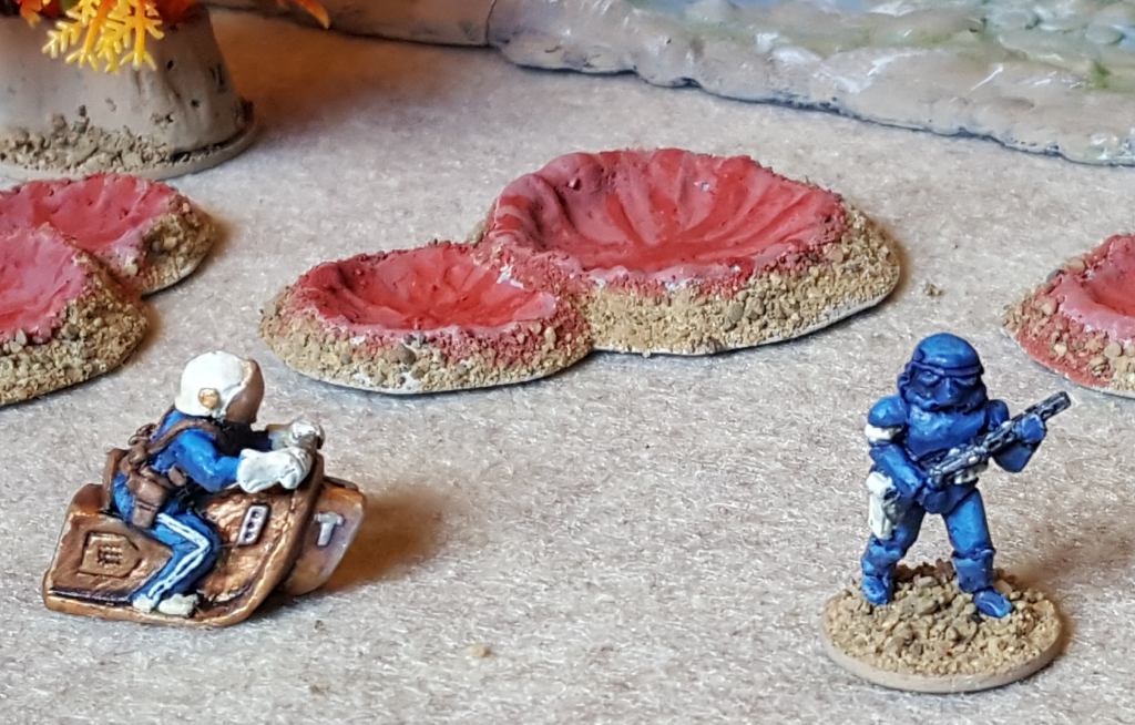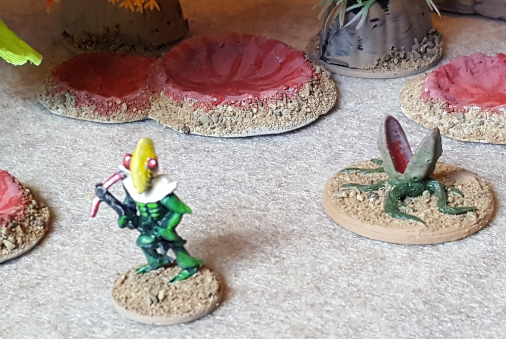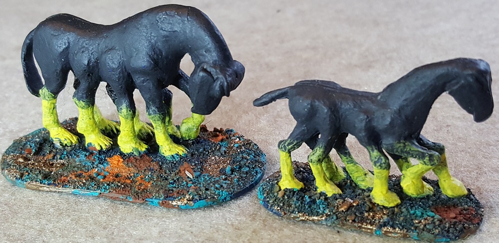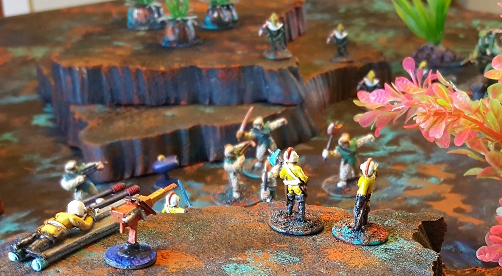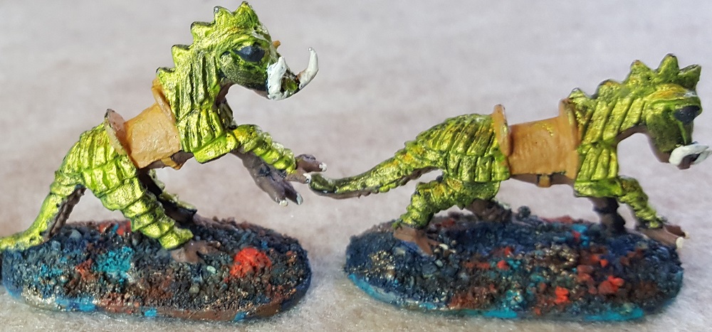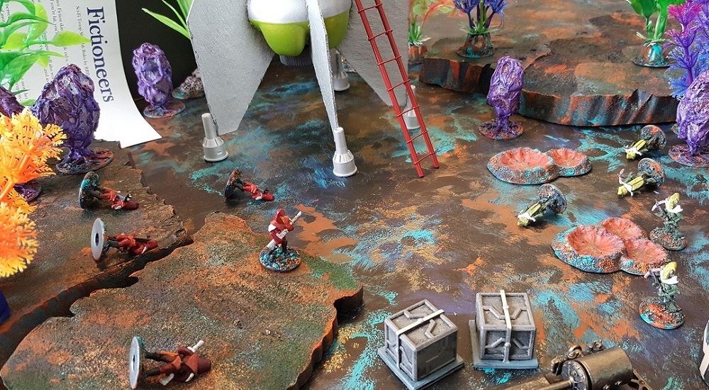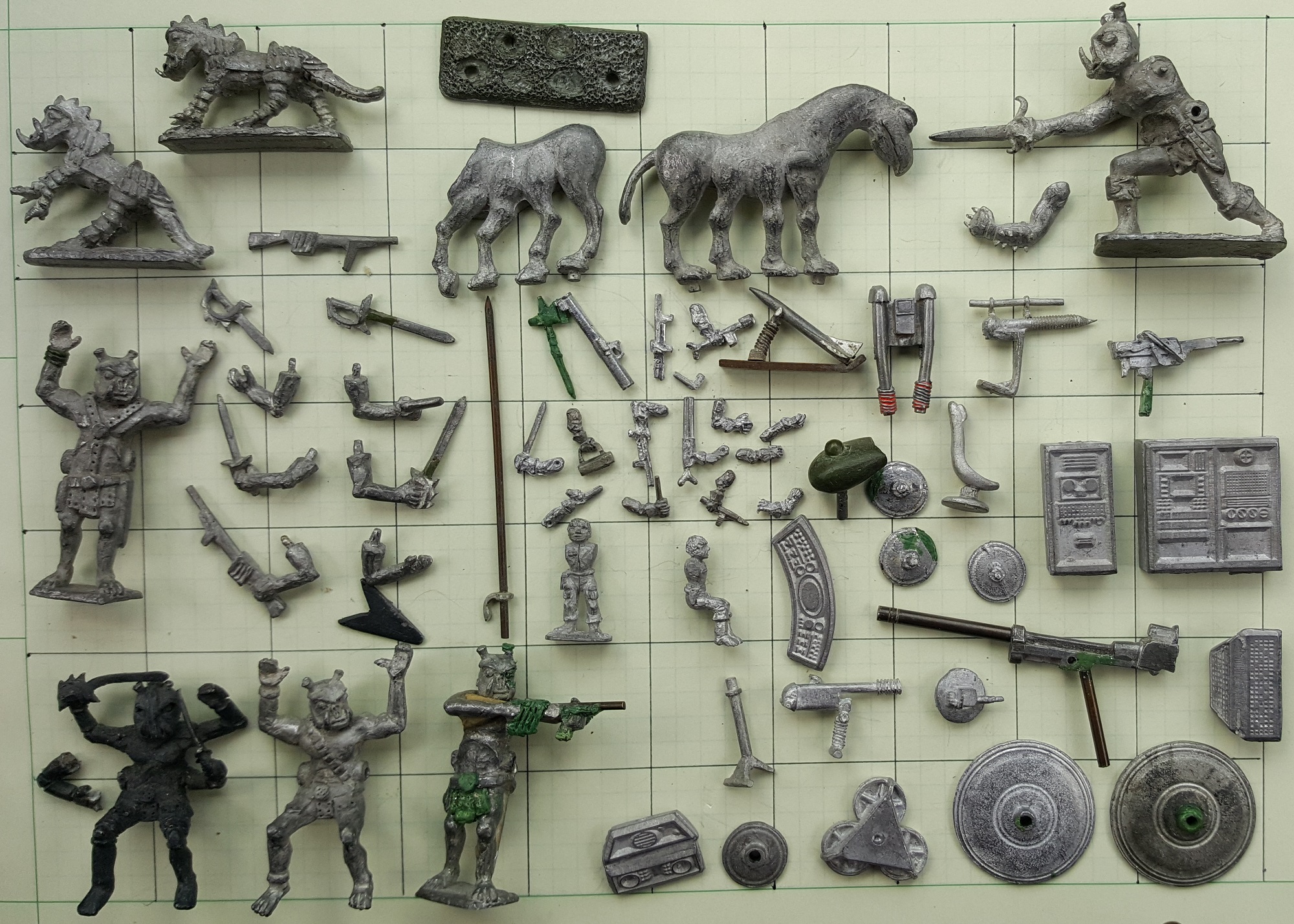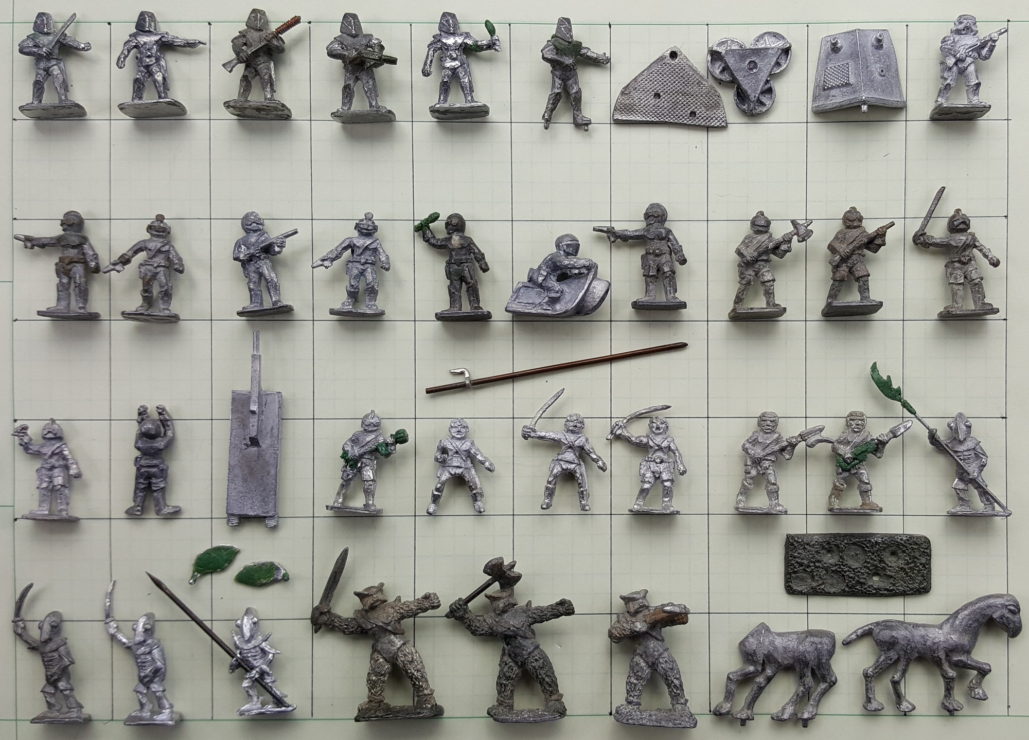 Above, a couple battle scenes using Fictioneer minis. Below, an unpainted selection, of some of the items as received from Stan.