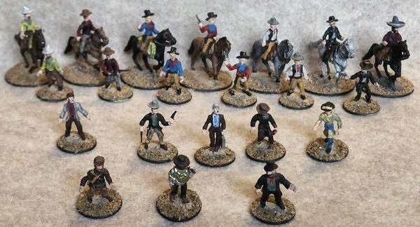 I’ll have to come back and post more later but for now, the below photo shows our current collection of Old West figures. The mounted figures are separate from the horses, and most have a matching pose on foot. These work great for any games where characters can mount/dismount during the course of a game session.