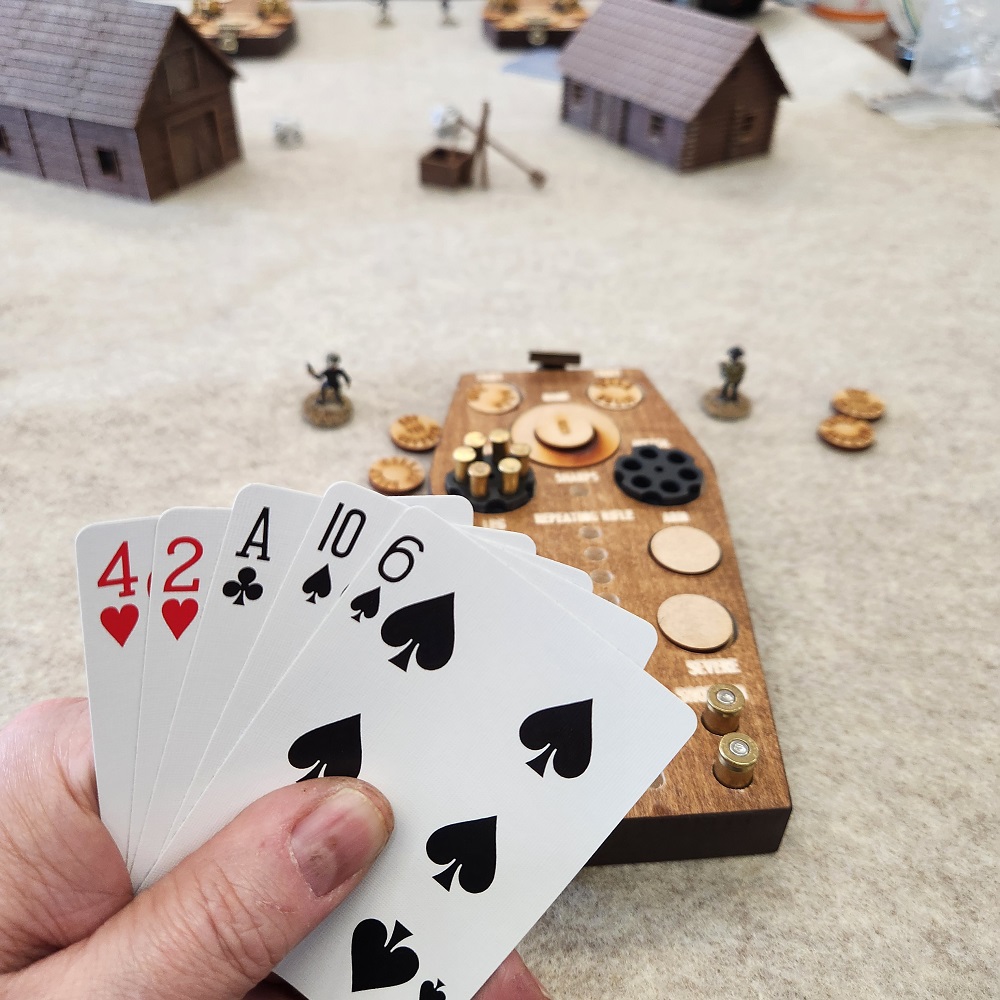 We really enjoyed playing the Old West game called Ruthless by Mark Fastoso and Brian DeWitt. It can be found for free at Mark’s Game Room website here. There are also several scenarios available (many for free) there and at littlewarstv.com. We’ve only tried the Dodge City Draw scenario so far but if they all are nearly as fun as that one, I’m sure we’ll eventually get and play them all!