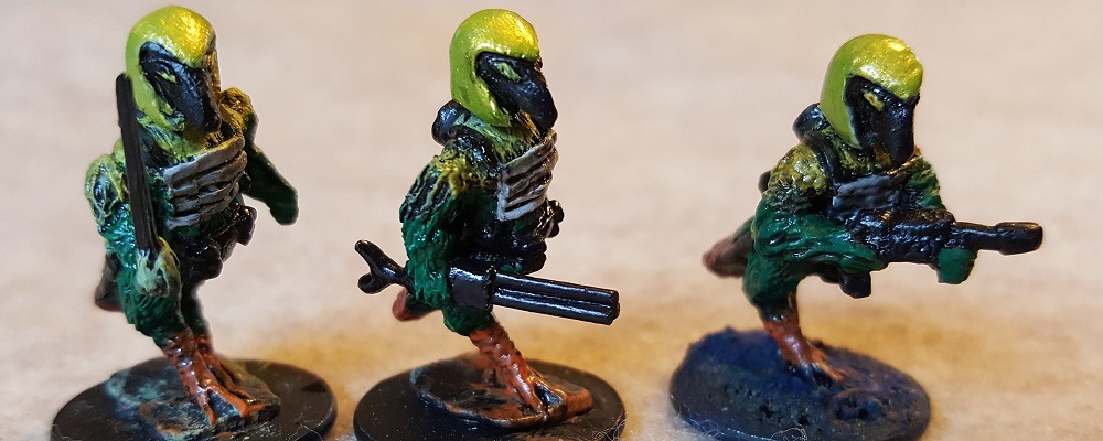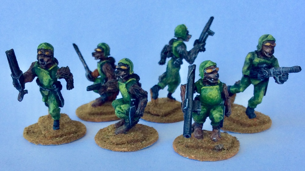 These are sci-fi figures that were sculpted by Stan Johansen in the ’70s. They come in three scales: 1/300 or 6 mm, 15 mm, and 1/72 or true 25 mm (A 6′ individual is represented by a mini that is 25mm from foot to top of the head).