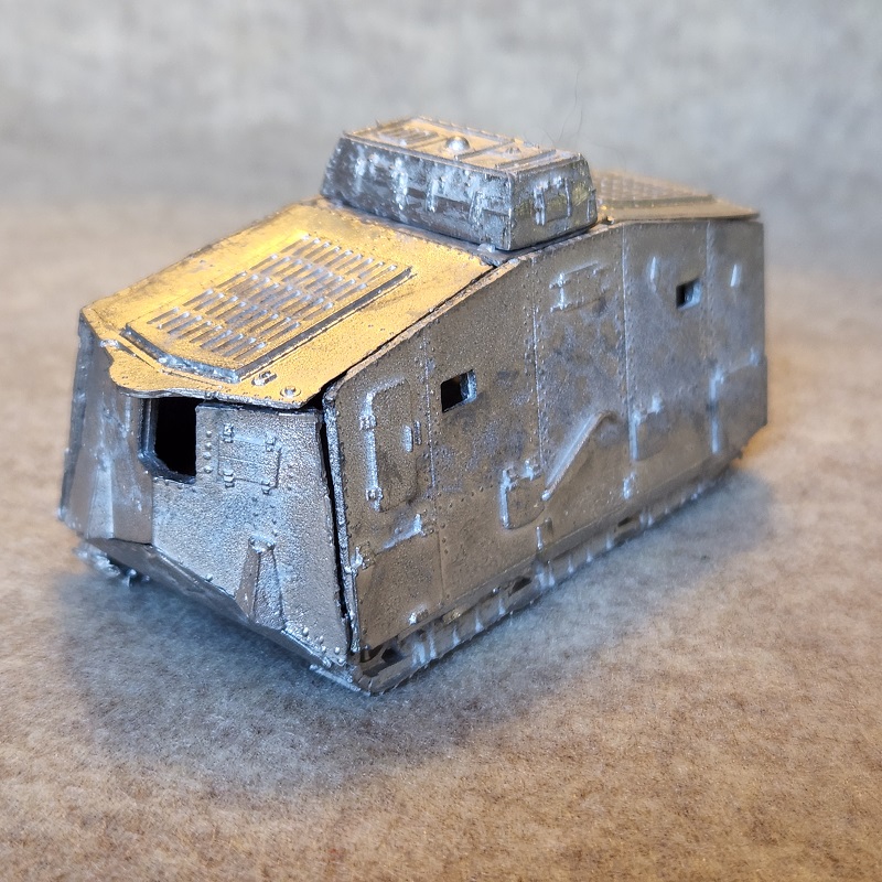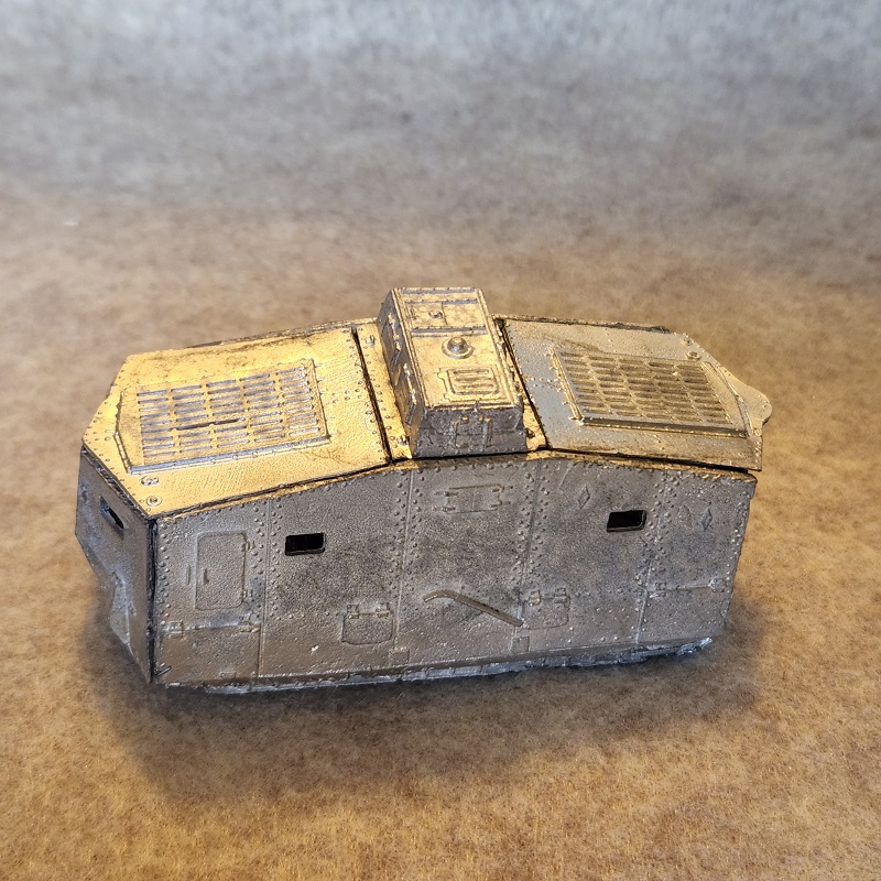 Wip photos of our own German A7V Tank can be seen below. We hope to have U.S. infantry and a few cavalry poses sometime next year. Stats for all these units and vehicles will be included in our Beer & Pretzels Early-Mid 20thC Rules (or BaPEM20 for short). Work on that rule set has stalled out about but we plan on getting back to it soon.