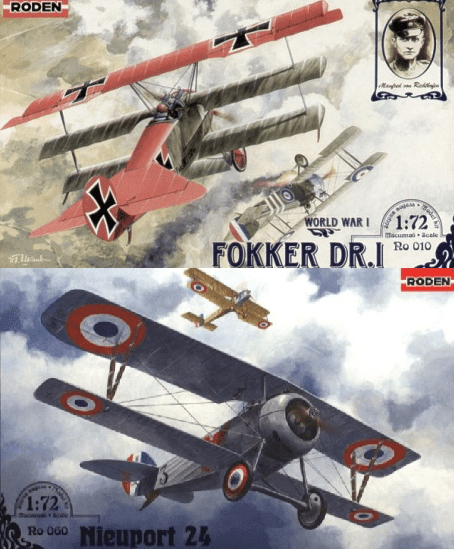 The other area of WWI that we are covering is aerial combat. This can be accomplished in 1/72 scale models as mentioned above, but for a more portable set, or for smaller table areas, or for larger engagements, we will be carrying 1/144 scale planes from Reviresco and Wings of War/Wings of Glory. There are several great rules sets out there for this sort of thing. We play Aerodrome 1.1 here, and will be selling it in our shop soon, but for now, you can check out our fan page for it here for more information.